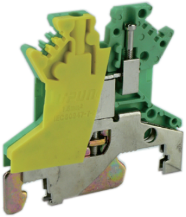 接线端子,接线方式:螺钉连接,连接量:2,压线范围:0.14mm²-1.5mm²,厚度4.2mm,高度40.6mm,颜色:黄绿,安装方式:TH35-7.5、TH35-15、G32-15、G32-18