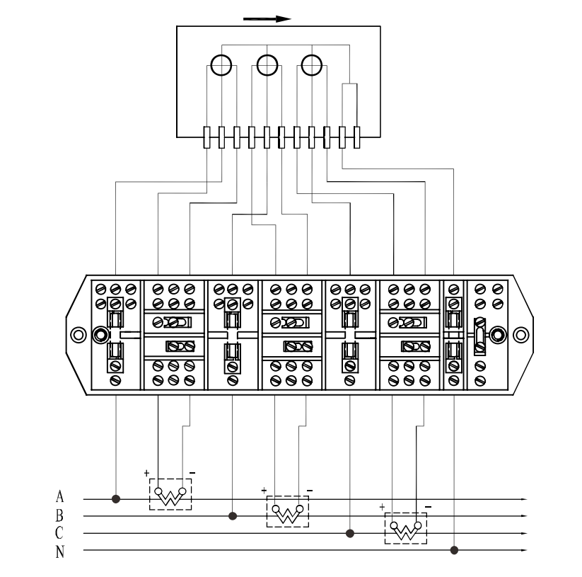 电度表接线盒,额定电压:380V,接线方式:螺钉连接,压线范围:0.5mm²-0.4mm²,宽度233.5mm,高度42mm,颜色:黑色